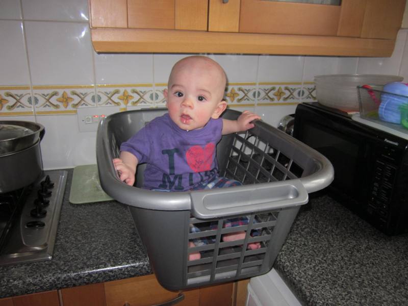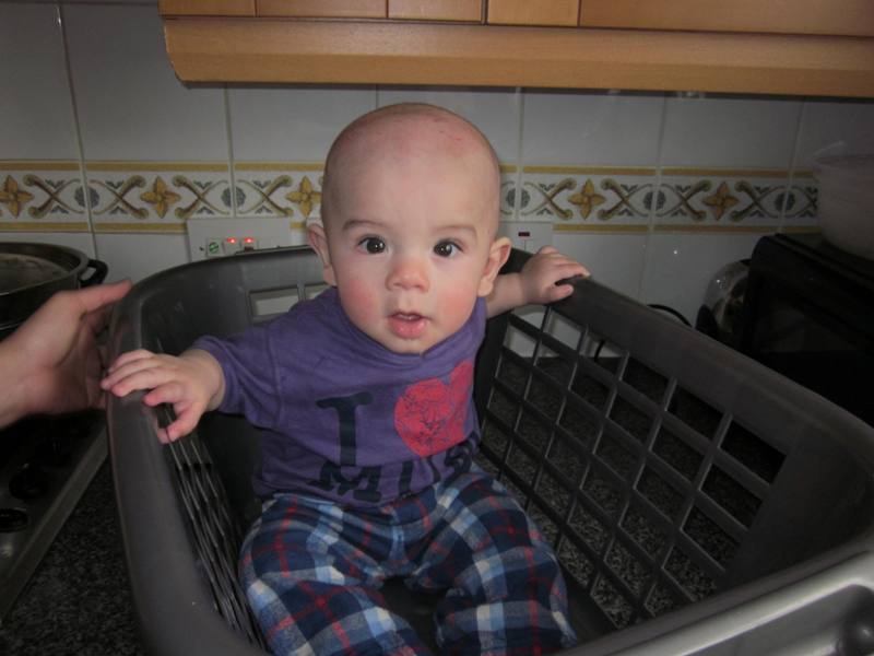 Our boy has boundless energy – he seems to get more every day; clearly, we are in deep trouble here… – and loves to laugh and play. He’s also very easily amused. Just plop the kid in a small laundry basket and let the fun begin!