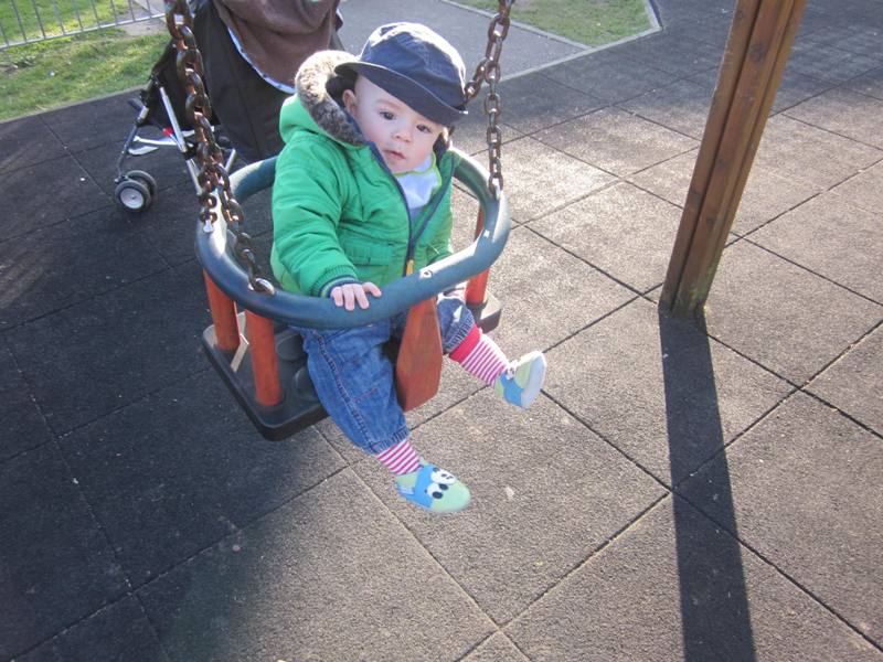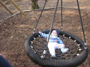 Nyan has spent some time on swings, as you saw in this video. Here is is on a tire swing. Does he look unhappy?