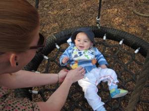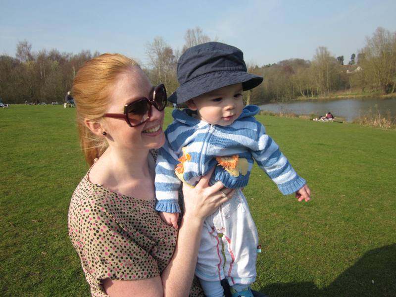 And finally, young Nyan Thomas and Auntie Lisa (at the same pond you saw in these pictures from December) Happy little guy!