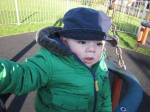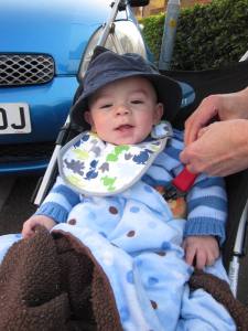 First up: the young man needs to be properly strapped into his stroller: