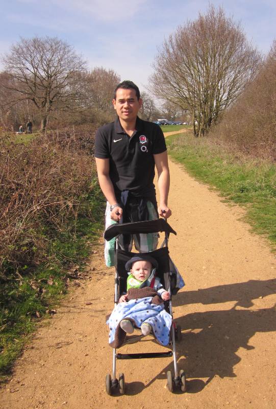 Here he is with Uncle Noel on a trail through a park: