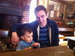 We wandered around the town a bit and finally settled on an old pub for lunch. We’re talking a real pub here – they served pretty much only steak and ale pies, all the beer was from hand-drawn taps, there was a giant fireplace in the middle of the room (not lit that day), and the floor was covered in bits of sawdust. (Nyan, who can be rather picky about things that are “messy” – except of course when it’s he who made said mess – was aghast at the “messy” floor and tried a couple times to clean it up, bless him.) The food was good, the atmosphere was warm and welcoming, and Nyan had a good time, despite the dirty floors: