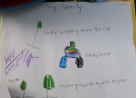 Beyond all that, though, he’s expressing his very fertile imagination through ever-more-elaborate drawings. Okay, ‘elaborate’ might be overstating things a tad, but the point is, he’s definitely progressing. Some recent examples, with annotations either by a teacher or by Mommy: