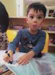 Nyan’s becoming ever more adept when it comes to using a pen, crayon or marker to express himself. Just the other day he wrote out his name in large block letters (he spelled it Y N A N, true, but still, this is a big deal!) and his coloring books show definite improvement over his earlier scribbles.
