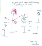 At the end of the day, when Daddy picked him up from school, Nyan pulled a piece of paper out of his backpack that his teachers had put in there for it to be taken home. It was some art he had made, a picture of My Grandmother: the paper had black lines on it to show the shape of Grandma’s body and head, and Nyan had added her facial feature and colored her hair.
