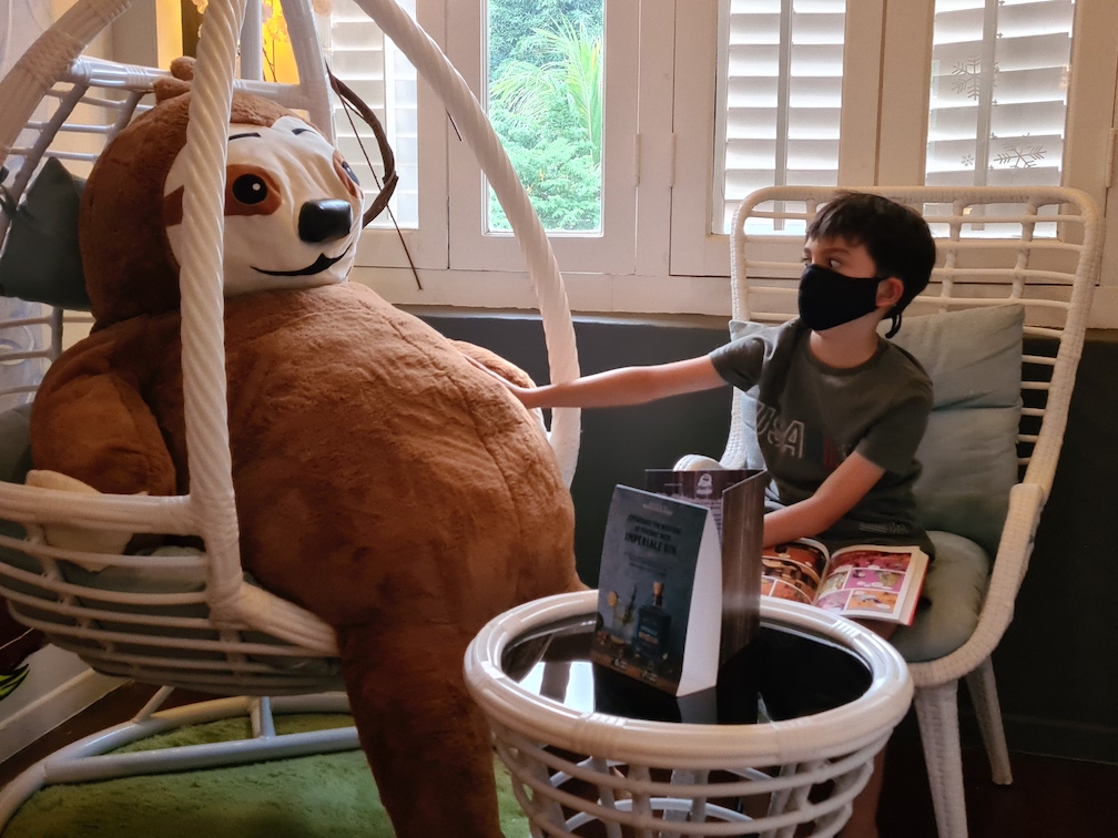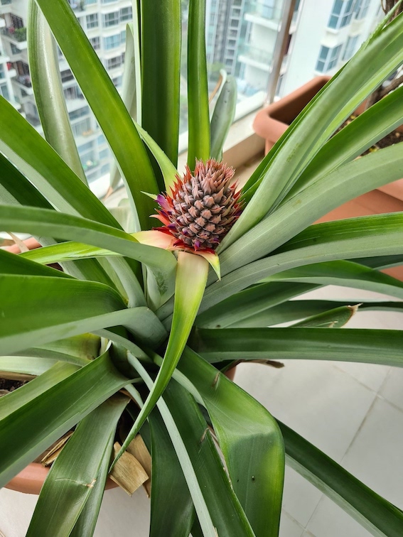 We like to connect with nature even at home. Our balcony is filled with plants, one of which is pineapple plant we grew from a fruit we bought at the grocery store. Every once in a while it bears fruit!