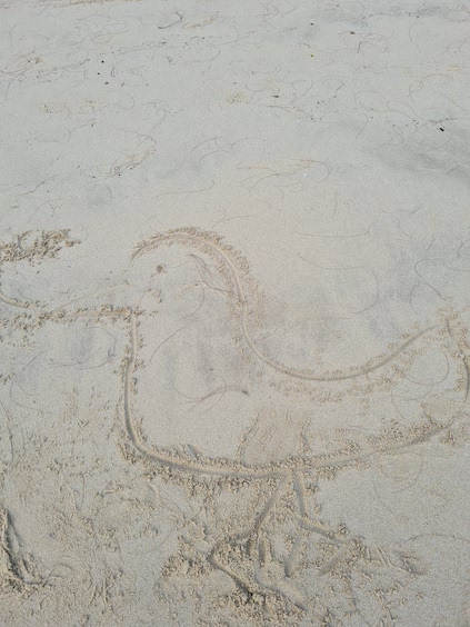We did some sand drawing. Daddy helped – he’s not quite the artist that Nyan is. Oh well.
